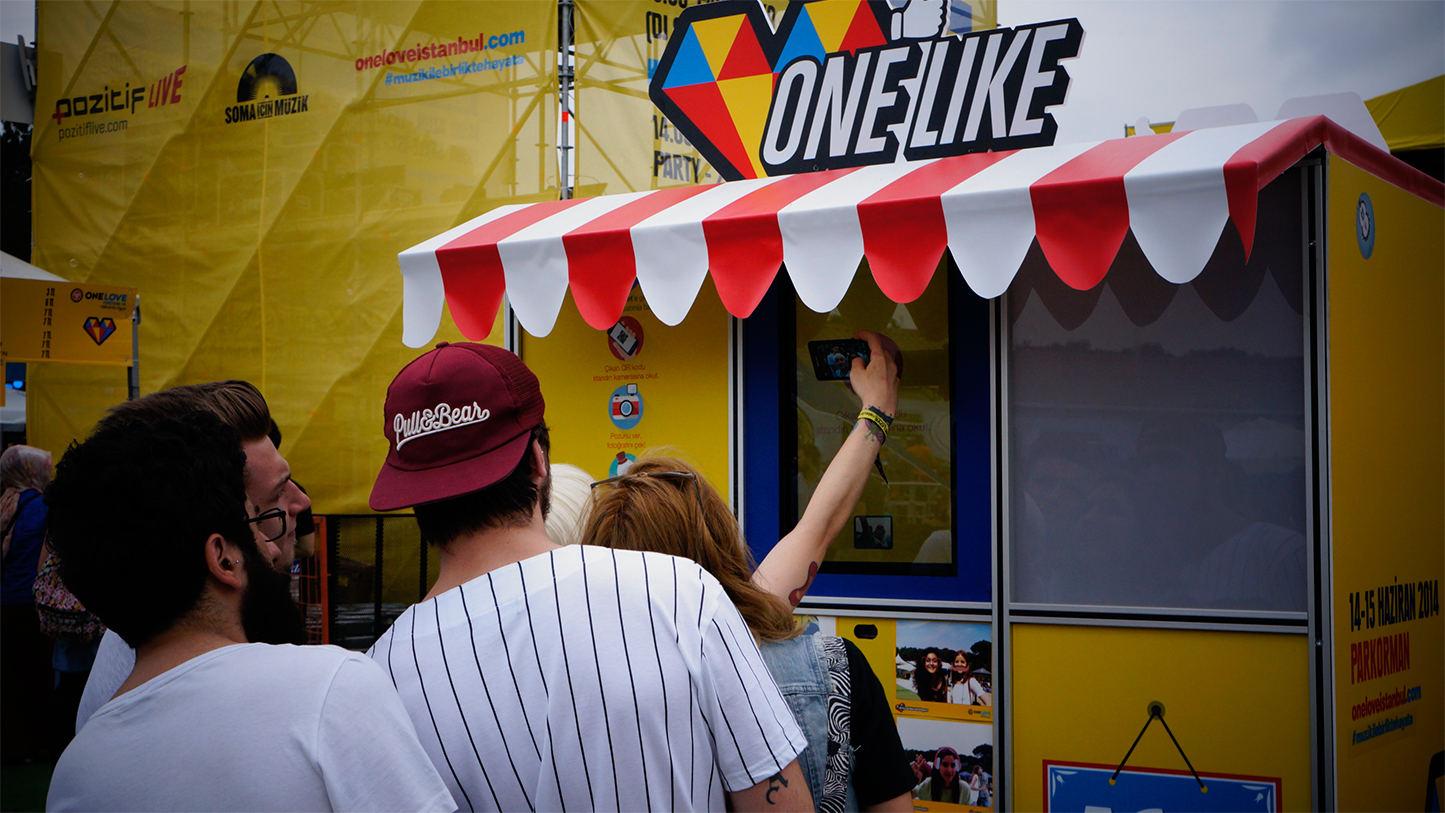 Bizler de bu anıların yenileri yaratılabilsin diye offline-online entegre bir işe imza atmak istedik. Bunun için #pozitifanlar isimli bir proje geliştirdik. Buna göre kullanıcılar her katıldıkları etkinlikte, Facebook Connect ile pozitifanlar.com’a bağlandılar. Akıllı telefonlarında kendilerine özel çıkan QR kodu etkinlik alanında bulunan photobooth’ların kameralarına okutarak kendi fotoğraflarını çektiler ve her etkinliğe özel tasarlanmış objelerle bu fotoğrafları zenginleştirdiler.